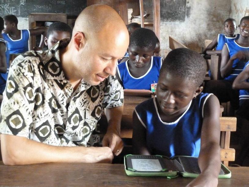 Info on CC-licensed photo: “A student in a Ghana classroom reading from a Kindle with Worldreader co-founder David Risher.”