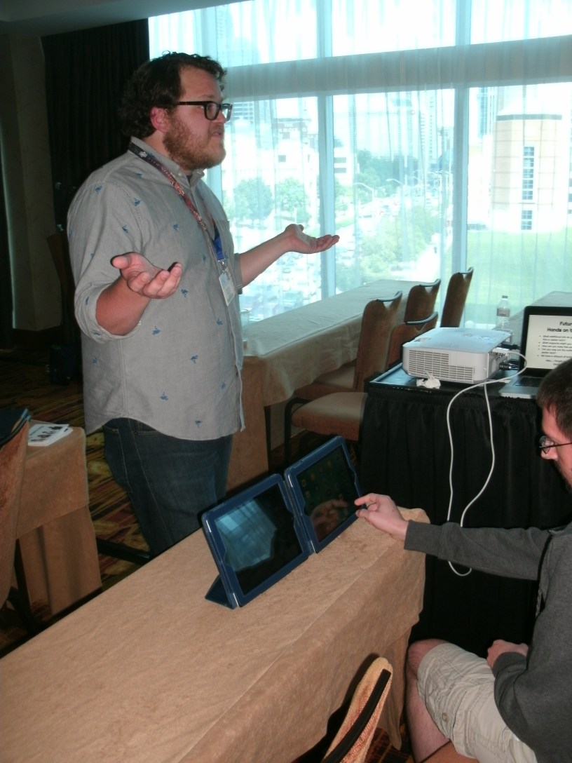 During the Q&A session, Jensen offered tips on reaching out to companies and foundations for money and material resources. Many companies—Target, Pearson, even LEGO—have funds set aside for precisely that kind of outreach, and all that’s necessary to do is ask. Afterward, Jensen brought out some iPads the library has configured with creativity applications for attendees to play around with.