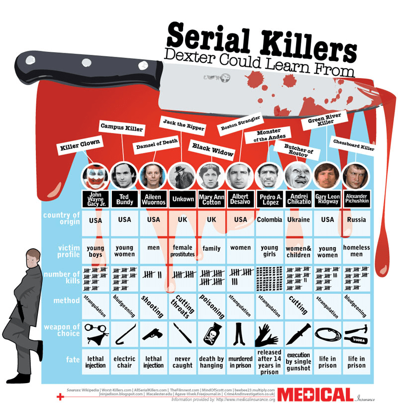 As part of this study, I look at past serial killers, even famous ones from history. So as a part of the buildup to the release of my novel, I could share a well-done infographic, even one I have created that talks either historically about these killers or analyzes each. I could also create something about the personality types of serial killers.