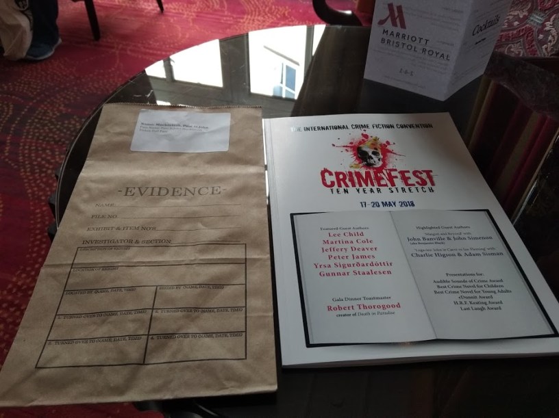 I’ve arrived at the Bristol Marriott Royal Hotel for a convention full of murder and larceny – CrimeFest 2018. This is the tenth anniversary of the event, which “was created following the hugely successful one-off visit to Bristol in 2006 of the American Left Coast Crime convention. The British hosts were encouraged to continue with a similar annual event and, as a result, the first CRIMEFEST was organised in June 2008. The convention has grown to become not only one of the biggest crime fiction events in Europe, but also one of the most popular dates in the international crime fiction calendar.”